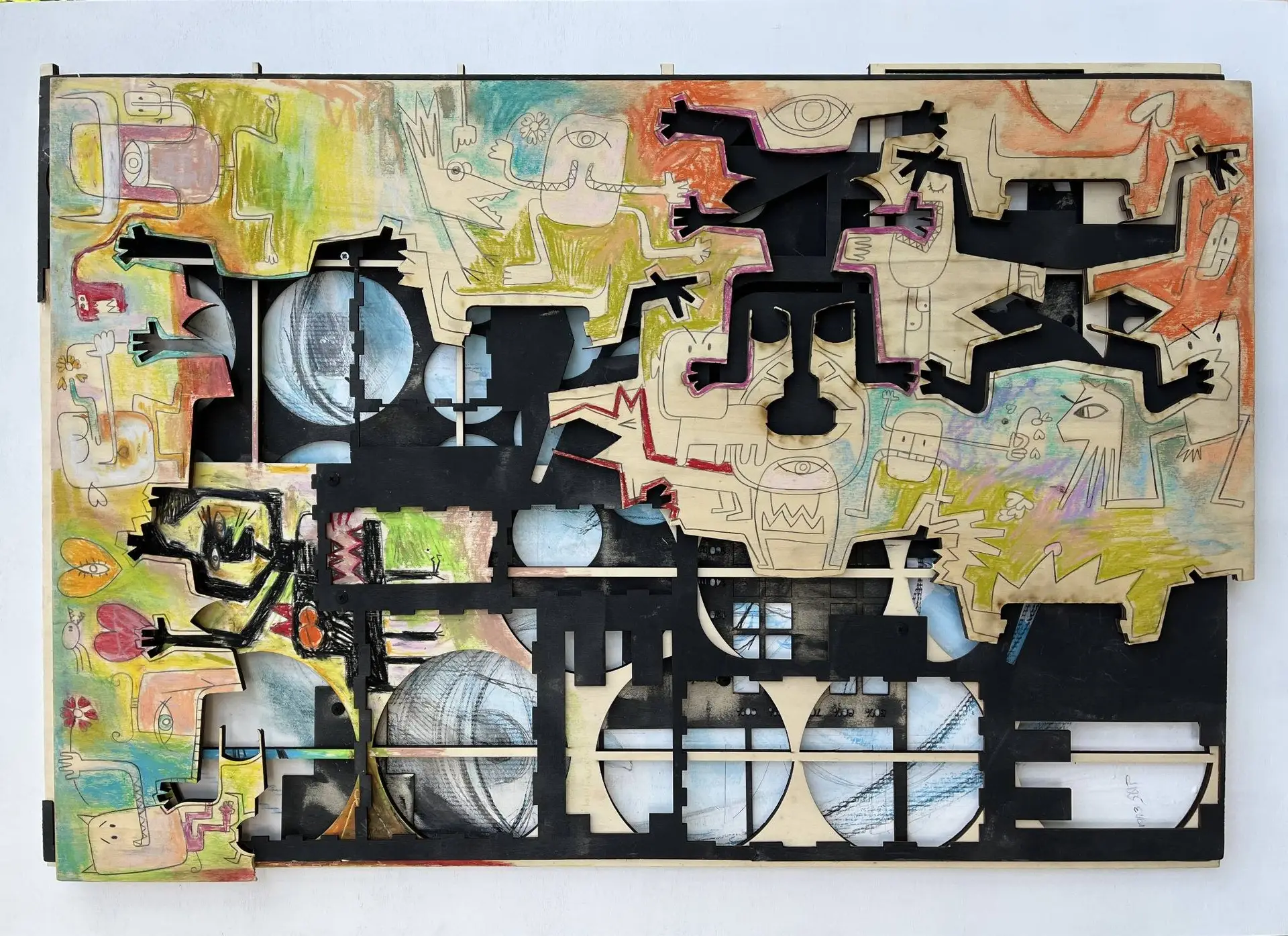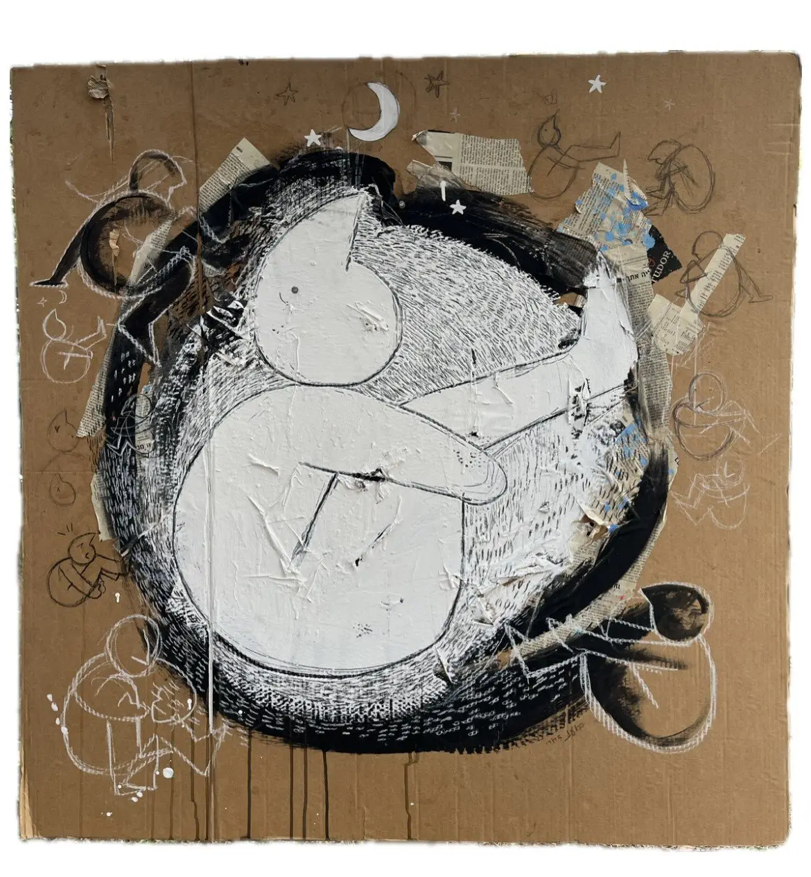 בועז מצייר דמויות שבטיות וציורים עם הרבה תנועה, בוטות והומור. "הדמויות שאני מצייר הן דמויות שפגשתי אתמול או בגלגול קודם, אני מכיר את הסיפור של כל אחת מהן…"