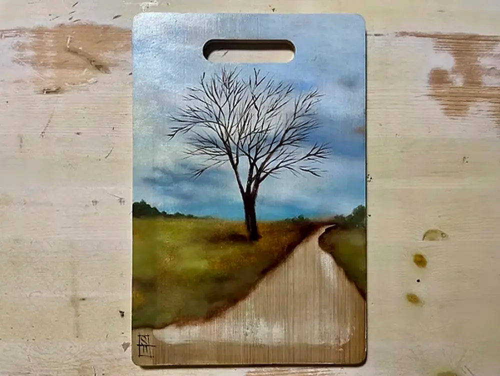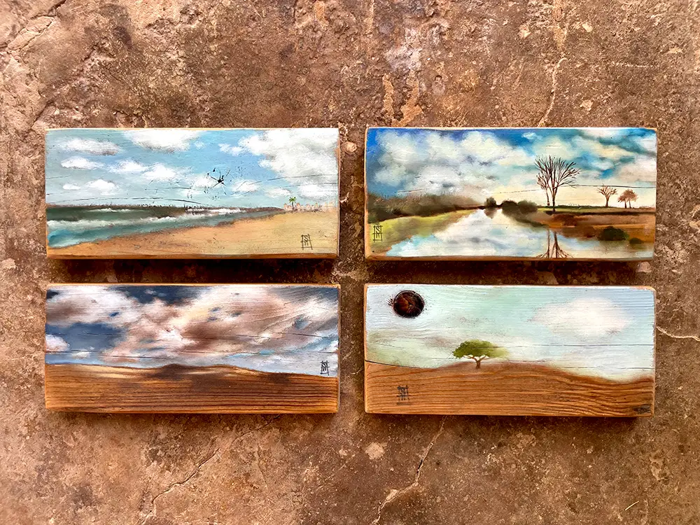 שרון יוחאי, בעלת המותג יצירה טבעית, בוגרת לימודי עיצוב תעשייתי HIT, מציירת נופים קרובים. על קווי אופק מתגלים בגווני אור העננים, ארץ ישראל היפה בחילופי עונותיה – צורת העץ הטבעית משתתפת במרקם היצירה, צבעי שמן מעניקים חיות לעץ הישן.